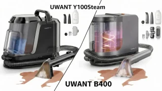 UWANT B400と最新Y100Steamを徹底比較!吸引力18,000Paやセルフクリーニング機能は共通ですが、実は「常温水モード」の有無や「コンセント形状」に大きな差があります。シルク・ウール等のデリケート素材を洗いたい方、日本仕様で手軽に使い始めたい方は必見です!